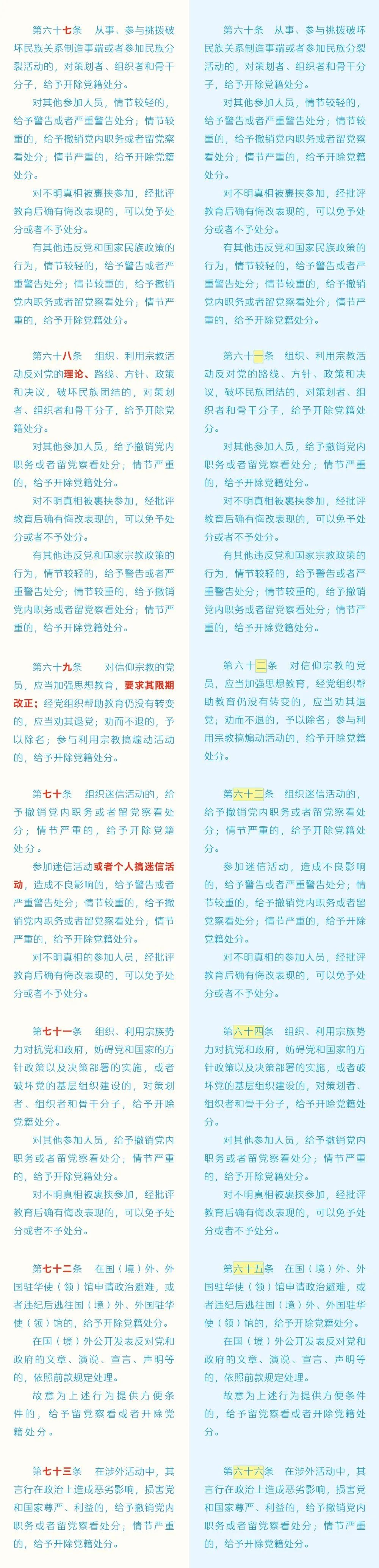 近日,中共中央印發了修訂后的《中國共產黨紀律處分條例》(以下簡稱《條例》),并發出通知,要求各地區各部門認真遵照執行。為幫助大家更好學習理解,本文對《條例》已修訂內容與原內容進行對照解讀。